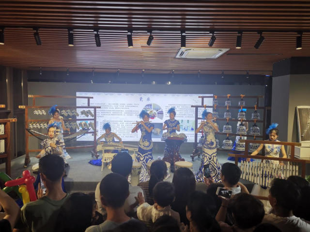 我校瓷乐研发团队受江西省旅游产业发展大会的邀请,在昌南里文化景区设立了“磬音瓷乐工作室”。旅发大会期间,集中展现了我校制作研发的瓷瓯、瓷笛、瓷二胡、瓷马林巴、瓷古筝、瓷鼓、瓷编钟、瓷编磬、瓷方响、瓷管钟、瓷拍筒等系列新型瓷乐器。开放日期间,工作室每天的参观者络绎不绝、人头攒动。为了展现瓷乐的教学成果,我校大学生女子瓷乐团以精湛的表演技艺和生动的艺术表现力,演绎了一首首悠扬、悦耳的瓷曲,技惊四座,受到了参会领导嘉宾的高度赞誉,彰显我校学子的青春风采。