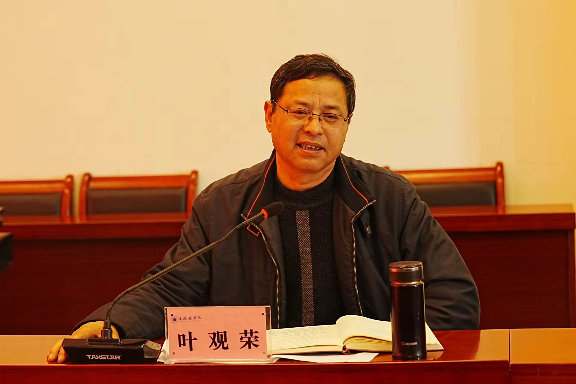 叶观荣指出,习近平总书记“3·18”重要讲话精神是我们建强建好思政课“关键课程”的定海神针。他表示,要发挥思政课教师示范作用,提高思政课实效性、针对性和科学性。思政课教师要给学生心灵埋下真善美的种子,引导学生扣好人生第一粒扣子。要大力推进思想政治理论课教学改革创新,着力打造一批学生愿学、要学、乐学的思政“金课”,采用多种形式,在教育教学中有针对性地回答大学生普遍关心的思想理论热点难点问题,让学生“解渴”“明理”;要注重思想政治理论课建设,积极挖掘专业课程和思政课程的育人元素、育人功能,推动课程思政育人全面铺开。