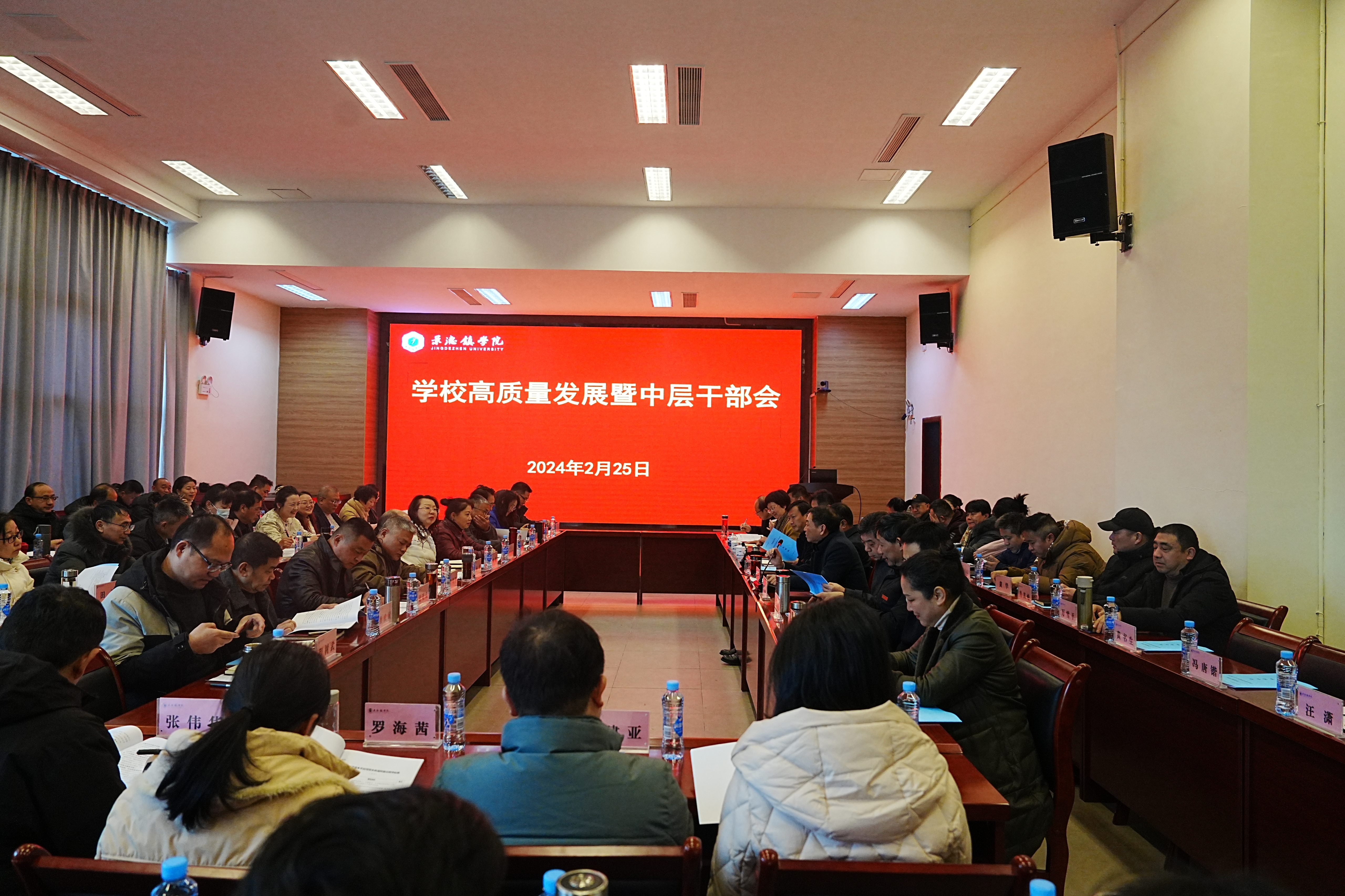 (本网讯:校报记者江珍燕)瑞龙迎春,新元肇启,为进一步促进学校高质量发展,加强中层干部队伍建设,强化履职能力,提高工作效率,2月25日上午,2024年学校高质量发展暨中层干部大会在校一号报告厅召开。校党委书记叶观荣出席会议并讲话,党委副书记、校长陈运平主持会议。党委副书记王丽心,党委委员、副校长郑昕芾,党委委员、副校长方漫,副校长黄志坚,党委委员、副校长周清平,党委委员、纪委书记罗少韬,党委委员、组织部部长朱贺江,党委委员、统战部部长万文军,党委委员、宣传部部长赵雪政出席会议。