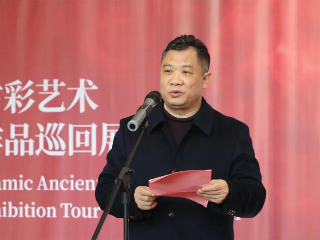 方漫发表致辞并宣布展览正式开幕。他表示,景德镇作为中国陶瓷之都,有着独特的地理环境和悠久的陶瓷文化积淀,景德镇学院作为深耕地方产业的地方型本科院校,高度重视传统陶瓷工艺的传承与创新。学校依托联合国教科文组织“陶瓷文化保护与创新”教席与教育部首批中华优秀传统文化传承基地等高端平台建设,积极开展学术交流与科学研究,获批了《陶瓷古彩与现代陶艺创作人才培养项目》国家艺术基金项目、“工艺美术”国家一流专业建设点、国家级一流本科课程《古彩装饰》。景德镇学院将秉承初心,砥砺前行,积极融入景德镇国家陶瓷文化传承创新试验区建设,推动江西乃至全国陶瓷文化产业的创新发展,讲好中华陶瓷文化故事。