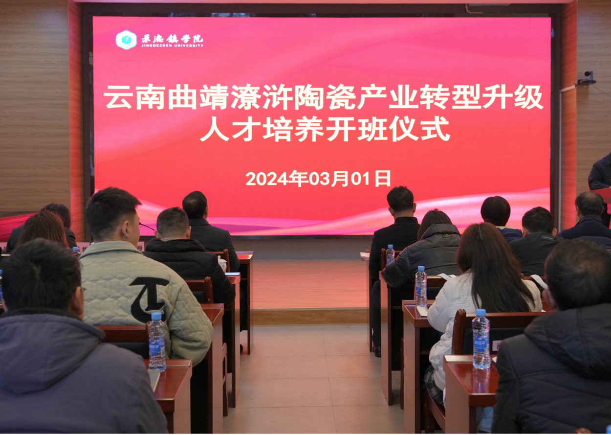 (本网讯∶校报记者江珍燕、喻振鑫)为深入贯彻落实习近平总书记考察江西时的重要讲话精神,牢记“建好景德镇国家陶瓷文化传承创新试验区,打造对外文化交流新平台”的殷殷嘱托,强化技能人才培养、提高人才培养质量。3月1日上午,我校在一号报告厅举行云南曲靖潦浒陶瓷产业转型升级人才培养班开班仪式,校党委书记叶观荣出席开班仪式,宣布开班并讲话,校党委委员、副校长方漫,曲靖市麒麟区人大常委会党组书记、主任谢茂华等出席,校党委委员、宣传部部长赵雪政主持开班仪式。