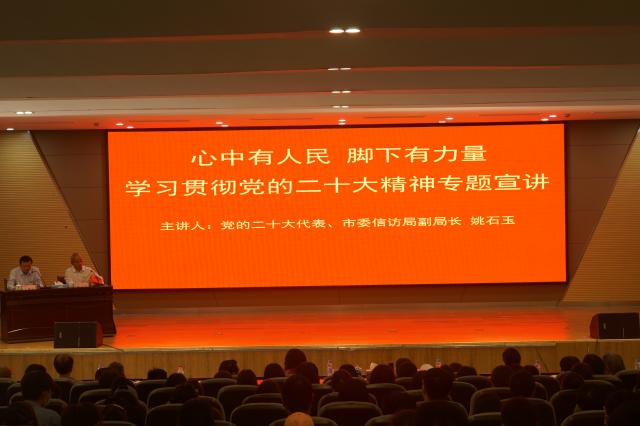 会上,姚石玉为大家作了题为《心中有人民脚下有力量》的宣讲报告。他结合此次赴京参加二十大的经历和工作实际,从感恩、感谢、起程、赴京、参会、感受与体会六个方面为大家做了一场内容详实、生动精彩的宣讲报告会。