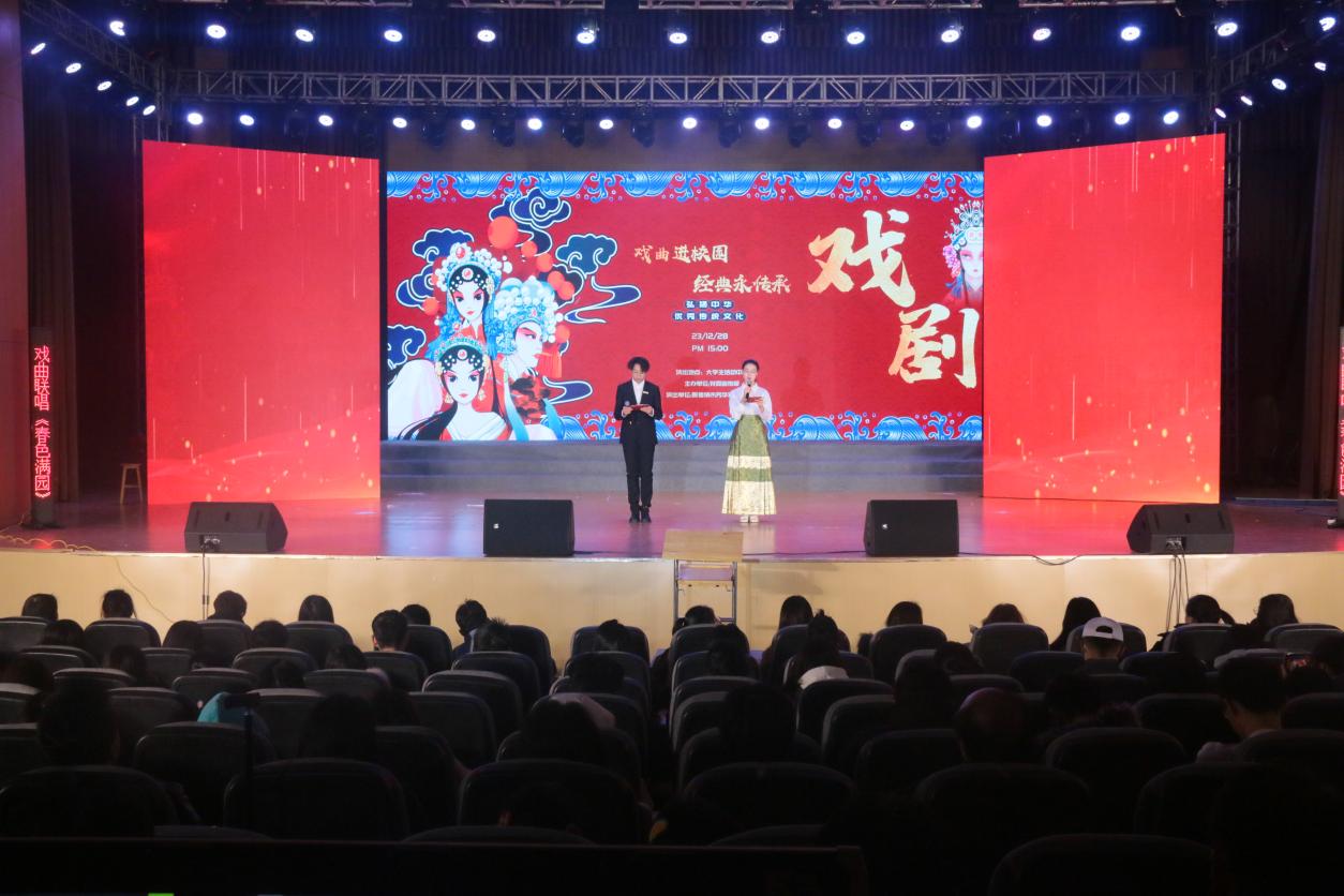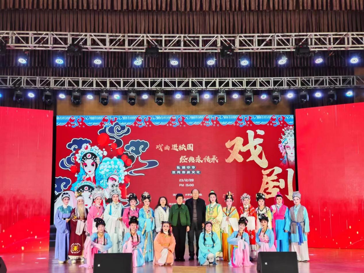 (本网讯:文|校报记者黄颖/图|校报记者黄颖、喻振鑫)为传承弘扬中华优秀传统文化,营造校园文化氛围,帮助学生进一步提高审美和人文素养,推进戏曲艺术振兴发展。12月28日下午,我校在学生活动中心举办“弘扬中华优秀传统文化”之“戏曲进校园经典永传承”活动,为广大师生献上一场丰盛的戏曲文化大餐。党委委员、副校长周清平,党委委员、宣传部部长赵雪政等出席并观看演出。