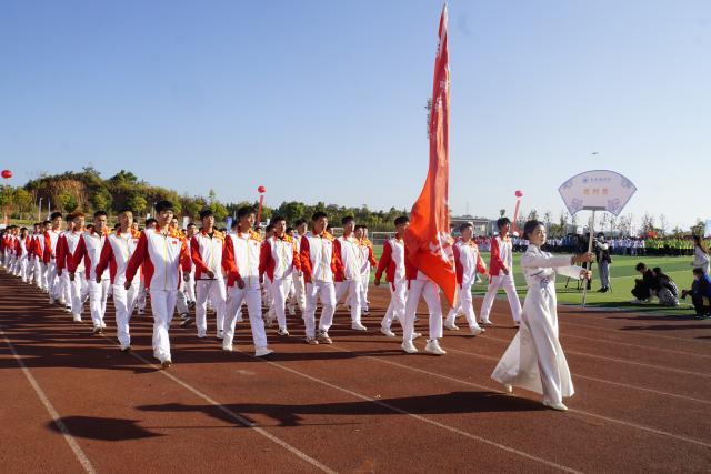 庄严的升旗仪式后,郑昕芾致开幕辞。他指出,运动会是检验学校体育教学质量的重要手段,也是落实立德树人根本任务、大力推进“五育并举”、培养时代新人的重要举措,更是培养学生团结协作良好品质的重要载体,既有效地活跃校园文化生活,又展现青年蓬勃向上的精神风貌。
