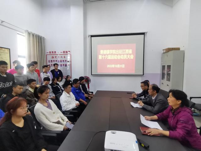 (本网讯余洪权)10月31日,我校参加江西省第十六届运动会代表团出征动员大会在体育馆举行。体育学院党委书记董小军,体育学院行政负责人、副院长洪燕,全体班子成员以及相关科室负责人,教练员,运动员共30余人出席出征动员会。