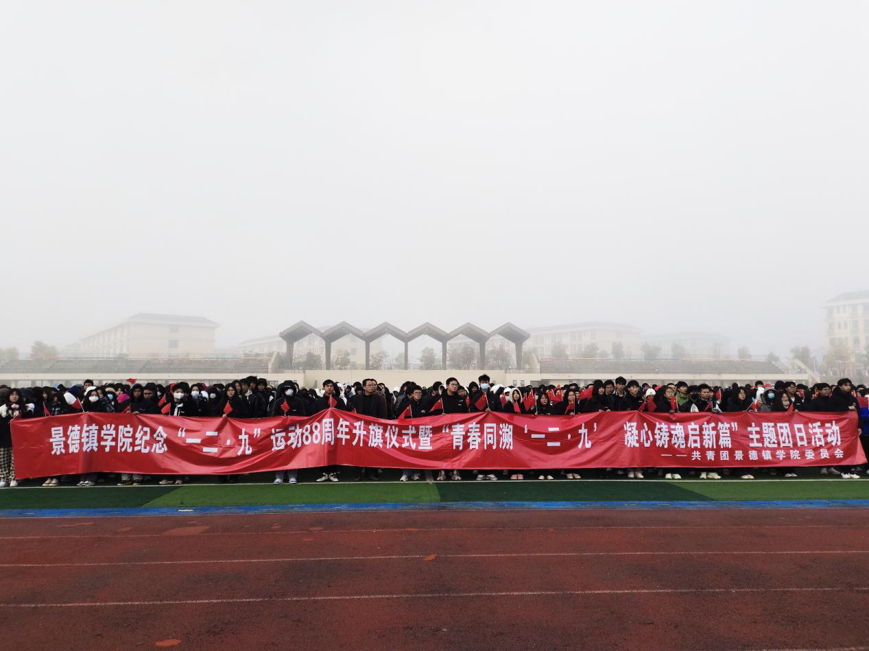 (本网讯:文|校报记者欧阳晰/图|校报记者喻振鑫)为缅怀革命先烈,牢记历史使命,激发青年学生的爱国热情,引导青年学生继承革命传统,弘扬民族精神,牢记历史责任,12月8日,景德镇学院在田径场开展纪念“一二·九”运动88周年升旗仪式暨“青春同溯‘一二·九’凝心铸魂启新篇”主题团日活动。