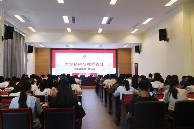 陈运平通过PPT的形式进行授课,以“大学精神与教师职责”为主题,紧紧围绕“大学要有大学精神”“现代大学精神的基本构成”“大学精神的缺失”“大学精神的坚守与回归”和“大学教师的使命与责任”五个方面进行讲解,深入浅出,分析透彻,为新入职教师上了一堂内容生动详实的培训课。