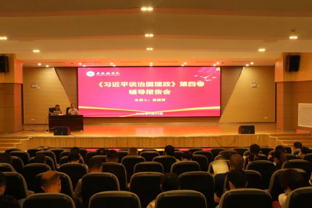 (本网讯:文|王棋/图|刘舒燕)9月23日下午,我校《习近平谈治国理政》第四卷宣讲报告会在图文报告厅举行,中共昌江区党校常务副校长姜进雪应邀来我校做专题宣讲,活动由宣传部副部长郑金江主持。