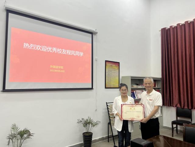 朱练平指出,程风同学毕业后不忘初心扎根乡村,用爱心和智慧照亮了乡村孩子前行之路,把自己的青春年华奉献给了乡村的教育事业,赢得了学生和家长的爱戴,成为新时代乡村教育新风尚。她先后荣获“全国模范教师”“全国最美教师”“全国三八红旗手”荣誉称号。朱练平希望外院学子要以优秀校友为榜样,珍惜大学时光,树立明确的目标并为之奋斗,创造属于自己的星辰大海。