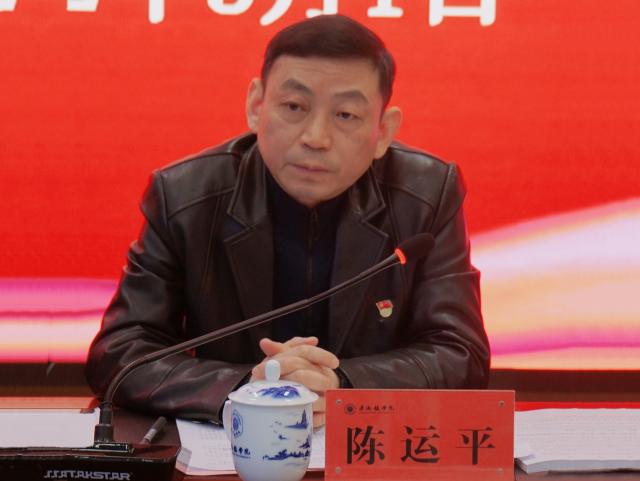 陈运平代表学校领导班子作2021年度工作总结,并就学校领导班子落实党风廉政建设责任制情况,学校领导班子履行意识形态工作主体责任情况,以及学校党委2021年度选人用人工作情况进行了汇报。