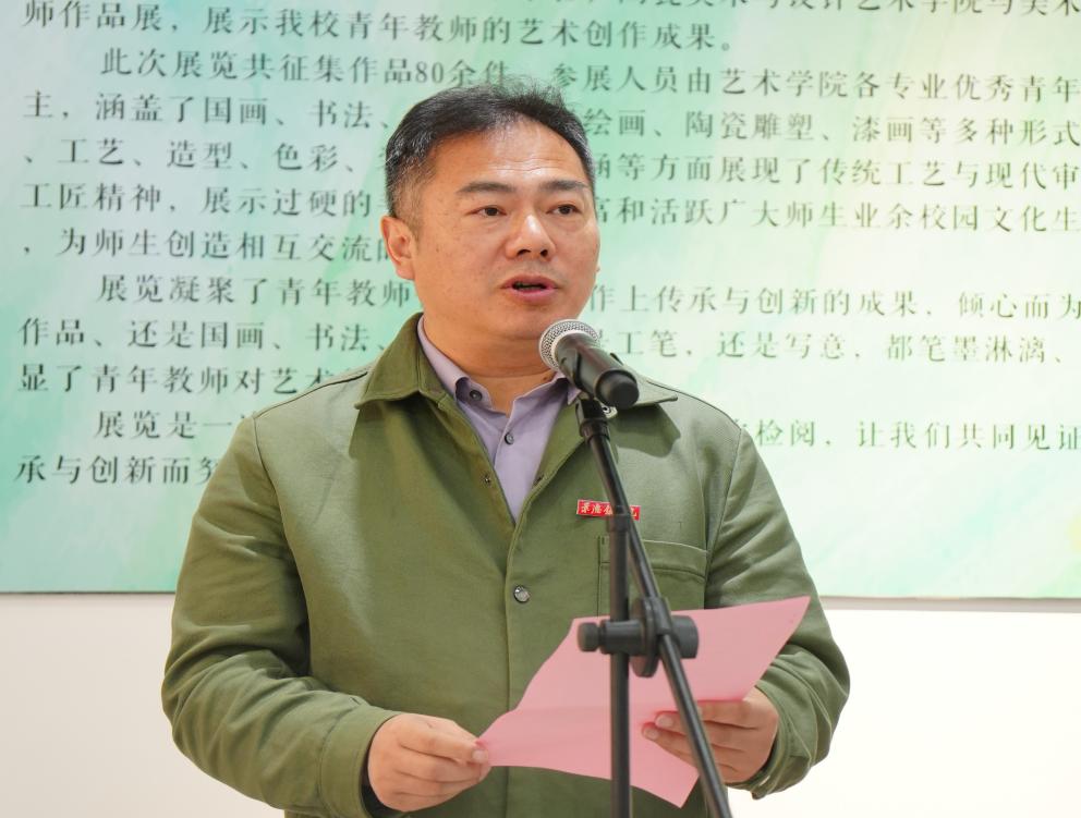 郑丰银致辞表示,此次展览让美术馆又迎来了一波“热潮”,吸引更多的观众前来美术馆参观,让更多人了解到艺术的多样性,真真切切感受艺术的魅力。同时,他希望青年教师们能够勇于尝试、不断更新教育理念和教学方法,不断提升自身的专业水平,努力做出更加优秀的作品。