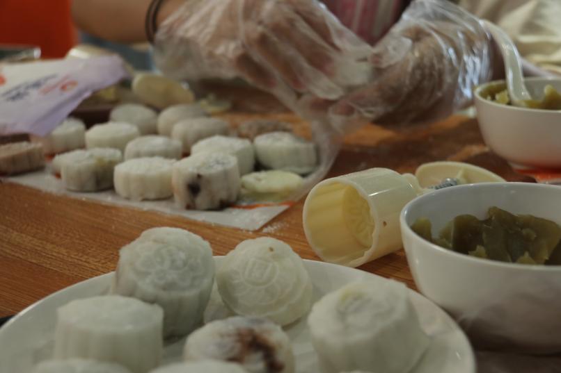 月饼脱模 校报记者叶梦梦摄