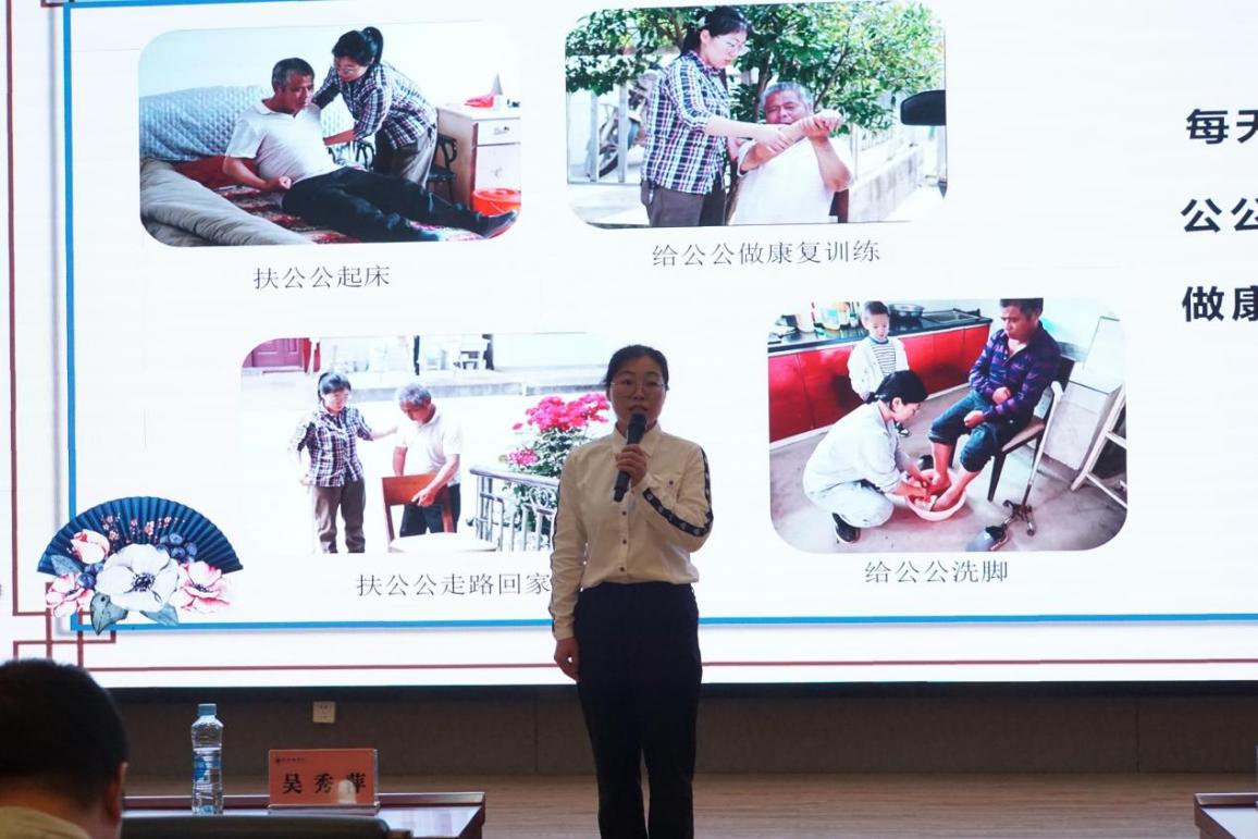 景德镇市好人宣讲团、浮梁县好人宣讲团成员,“瓷都好人”荣誉称号获得者——吴秀萍首先以“孝老敬亲传家风挺直腰杆撑家天”为题进行宣讲。她在宣讲中分享了自己的家风故事,发出了“传承好家风,做幸福家庭的守护者,推动形成爱国爱家、向上向善的社会主义家庭文明新风尚!”的倡议。