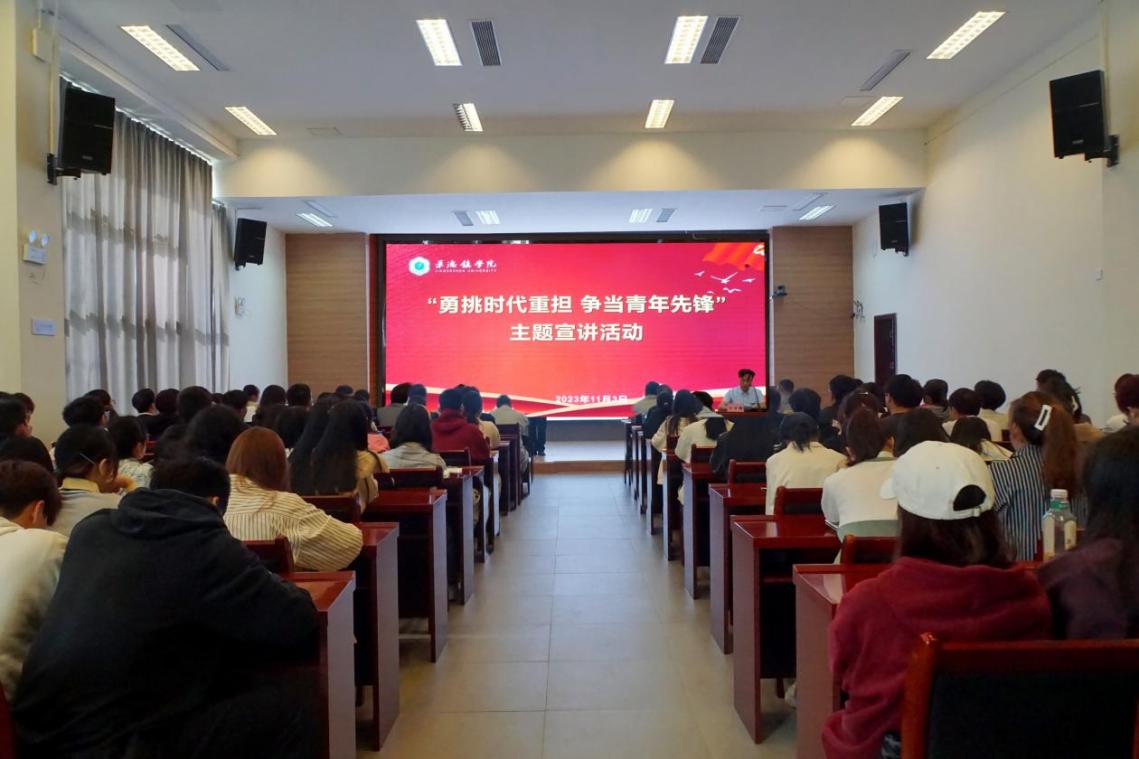 (本网讯:文|汤秀连/图|古滢冰)11月3日上午,浮梁县王港乡港之声宣讲团受邀来我校参加“勇挑时代重担争当青年先锋”主题宣讲活动。党委宣传部副部长汪万鹏主持会议,景德镇市委宣传部、浮梁县委宣传部、浮梁县王港乡也派出相关同志参加此次报告会。