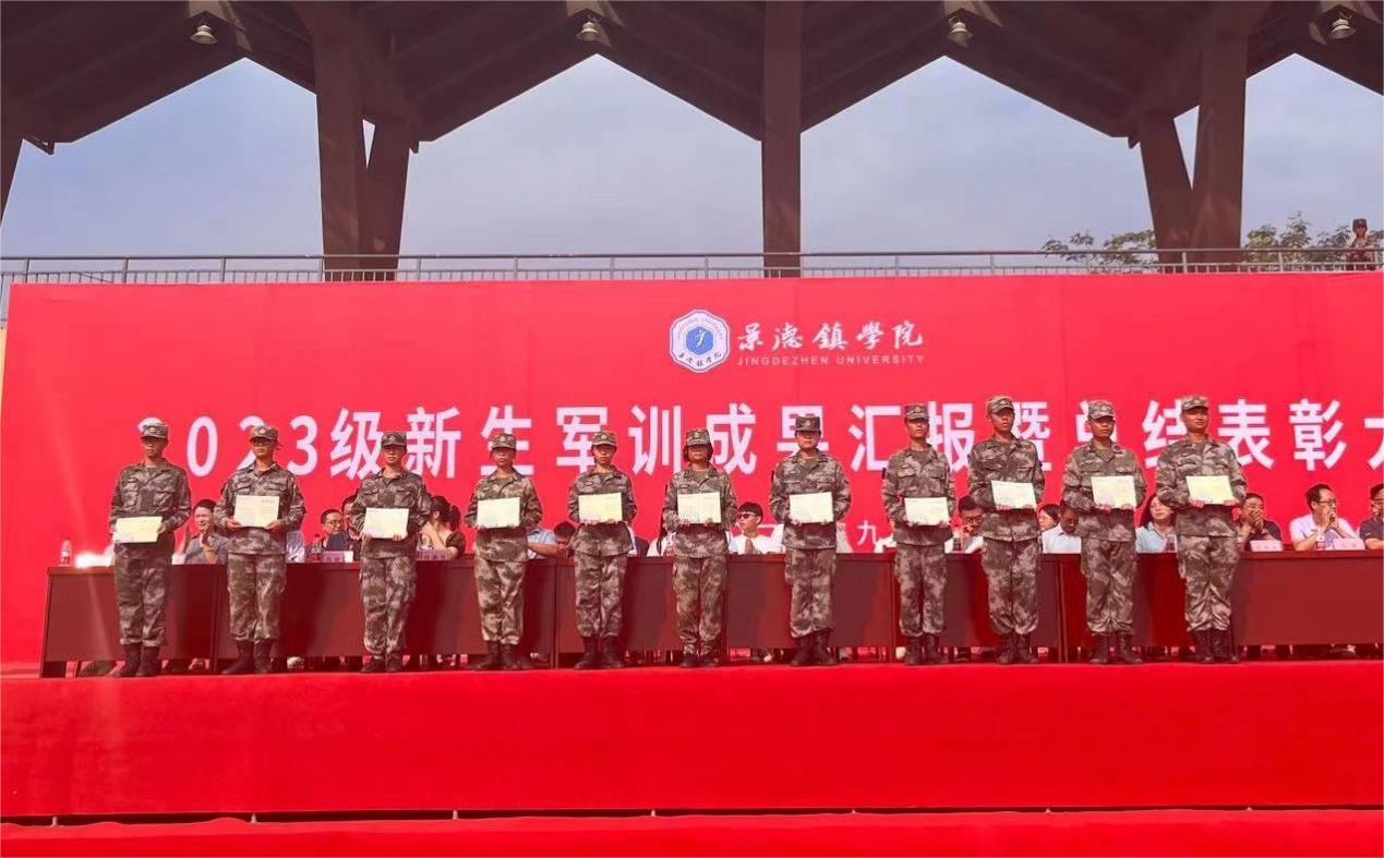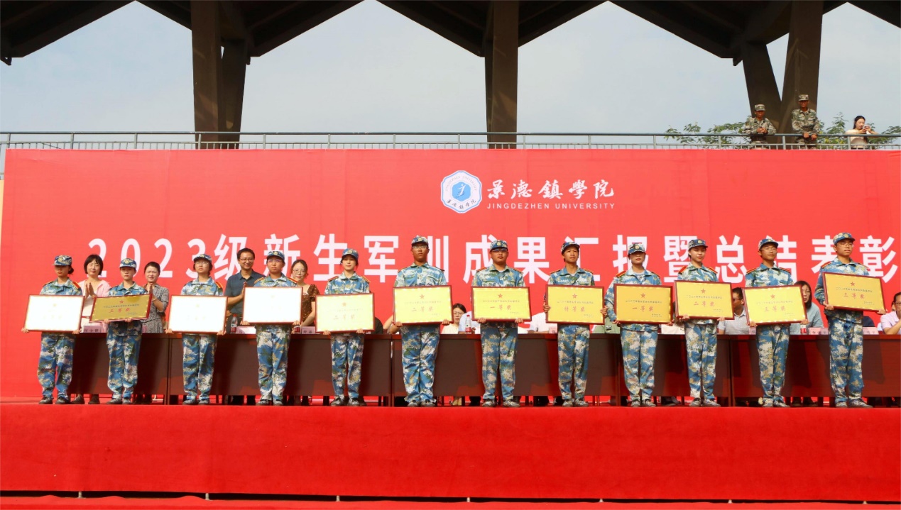 闭幕仪式上还宣读了《景德镇学院关于表彰2023级新生军训决定》,被表彰的先进集体和先进个人分别上台领奖。