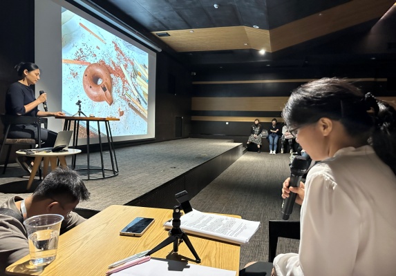 (本网讯:周怡萍图)10月17日-19日,我校外国语学院翻译团队助力陶溪川秋集艺术家讲座,为陶溪川秋集国际交流贡献高校力量。外国语学院院长吴芹教授莅临讲座现场,指导翻译工作。