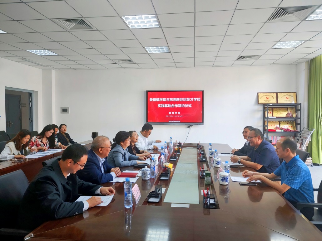 许明勇感谢了景德镇学院的盛情邀请和热情接待,表达了对双方达成更加紧密合作的期待,同时也对我校同学刻苦努力、勤奋务实的学风大为赞赏。他介绍了新世纪英才学校的基本概况、办学特色、校园环境、办学规模等情况,并希望校-校双方以此次合作为契机,充分发挥强强合作优势,在人才培养和实习就业方面达成更加密切的合作关系。