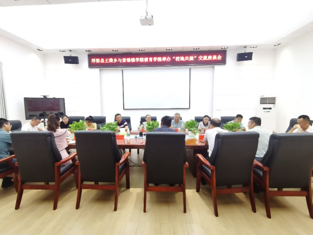 (本网讯:江霞琴)为推动产教深度融合,深化校地交流,凝聚广泛共识,探索校地高质量发展的有效路径。8月24日,教育学院赴浮梁县王港乡开展“校地共建”交流座谈会,教育学院党委书记李莉,副院长冯兵,王港乡党委书记黄勇,乡长胡国英,王港乡人大主席方兵生,副书记刘莉颖,王港学校书记邬来文、校长陈郁等出席交流座谈会,会议由王港乡党委副书记虞高明主持。