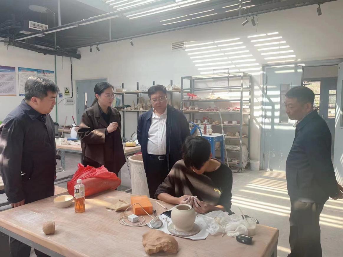 随后,两校相关部门负责人就专业建设、产教融合等内容进行了探讨交流,座谈结束后,张炳辉一行参观了我校美术馆,、艺术学院实训中心实操和教席大楼。