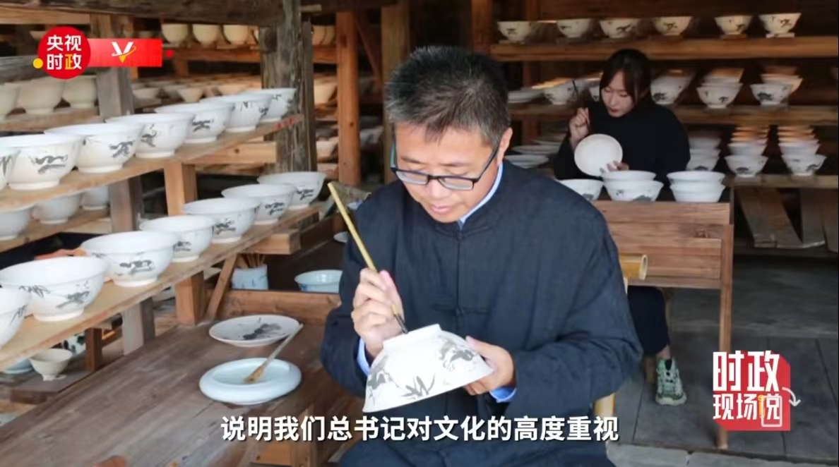 孙立新在习近平总书记考察现场创作民间婴戏青花瓷碗