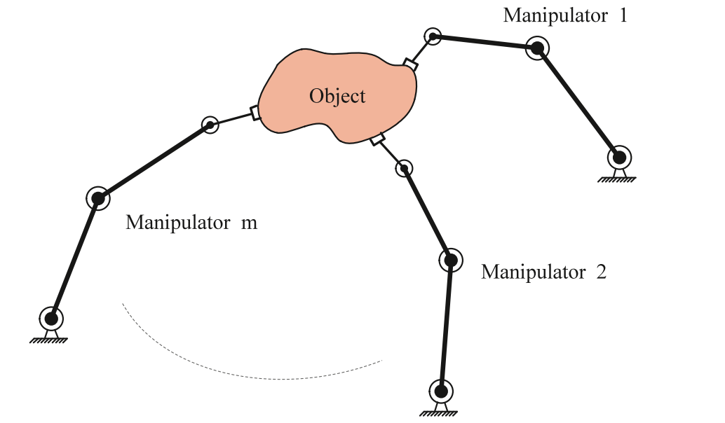 在实际应用中,由于受到非结构化环境、测量误差以及自身机械结构限制等不确定因素的影响,单机械臂在某些场景无法满足复杂任务的要求。当采用两个或者多个协作机械臂时,许多单个机械臂难以完成的任务工作都能够得到解决。当多个机械臂共同操纵同一个物体时,由于形成了闭环运动链,机械臂的运动会受到一系列运动学和动力学约束。因此,与单机械臂的控制相比,多机械臂的控制要复杂得多。此外,在实际控制中,系统中不可避免地存在参数扰动、外界干扰及未建模动态等不确定性,上述问题均给机械臂的高精度轨迹跟踪带来了困难。本文将轨迹跟踪控制任务视为施加在系统上的伺服约束,然后提出了一种自适应鲁棒约束跟随控制器,能够保证多机械臂操作同一个物体沿着期望的轨迹运动,最后,基于模糊集合理论以及合作博弈理论研究了双控制参数优化问题。