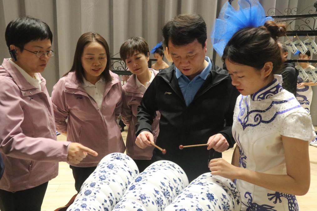调研组成员们和校领导们一同观看瓷乐表演 校报记者巫小雨摄