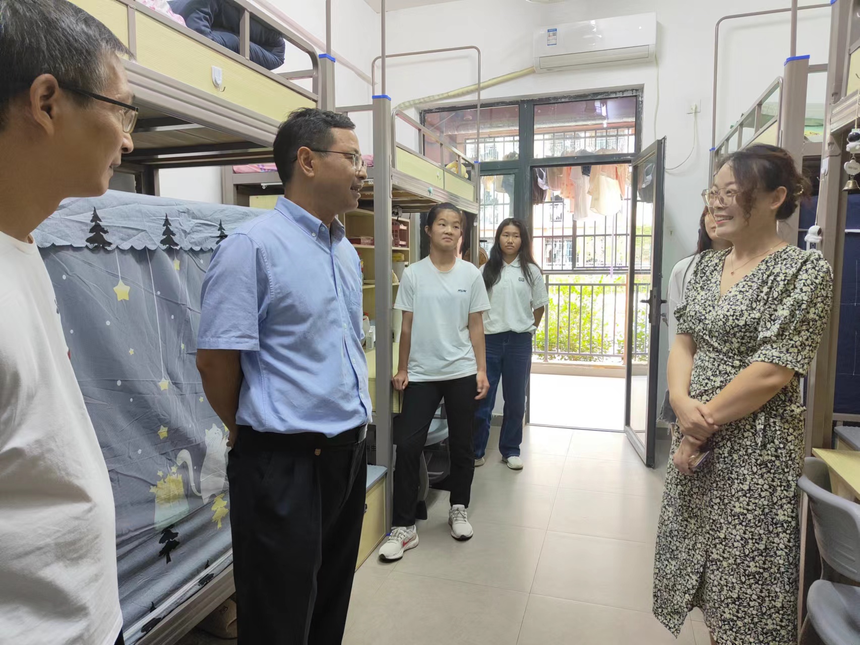 在新生宿舍,校领导和新同学亲切交流,热情询问同学们来自哪里,对衣食住行,宿舍生活是否习惯,在一一句“家乡在哪呀?”“来学校感觉怎样呀?”……中拉近了师生距离。同时,校领导耐心倾听并解答了同学们的问题,并叮嘱同学们要学会“文明其精神野蛮其体魄”,积极融入大学新生活。