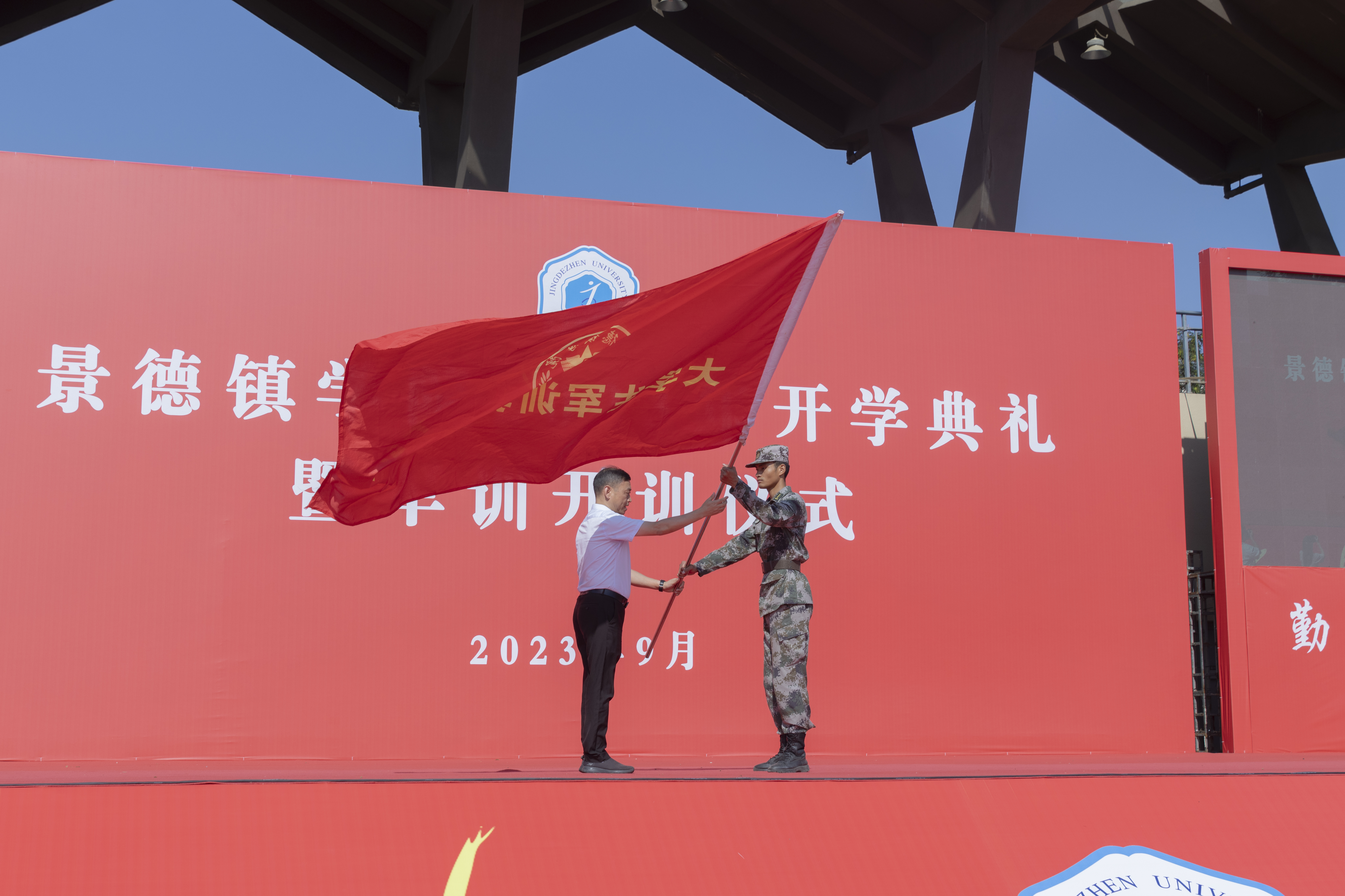 陈运平作以“博学慎思奋楫笃行,努力做一个‘大写’的人”为题,为新生上开学第一课,并向新生军训团授旗,宣布2023年新生军训开训。