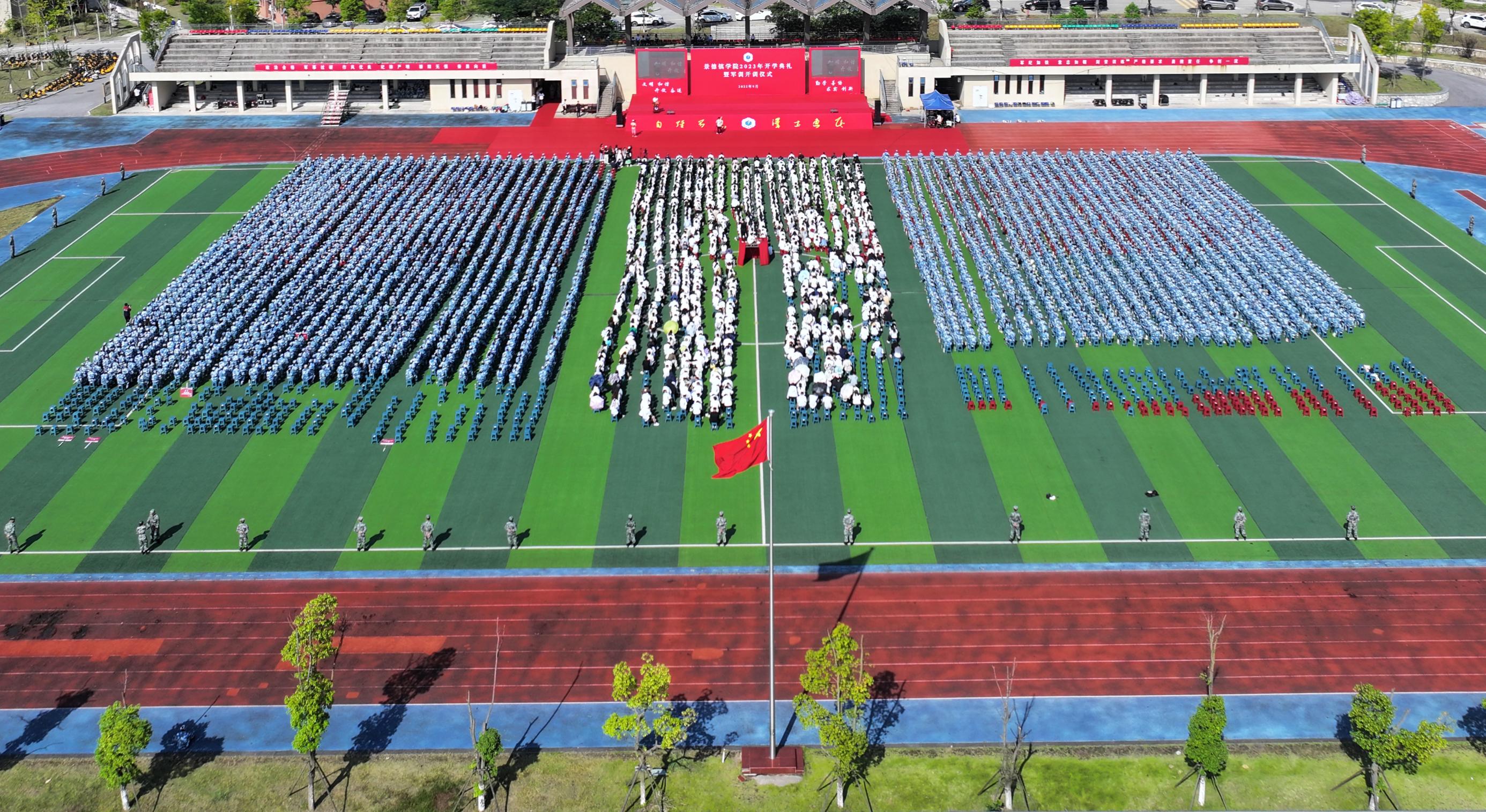 在全体师生合唱校歌声中,开学典礼落下帷幕。学校中层部门主要负责人,二级学院党委书记、院长、党委副书记、学工科科长,所有新生班辅导员和全体2023级新生参加开学典礼。