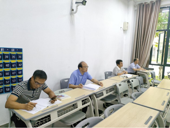 校党委书记叶观荣(左三)专心听取课堂内容 汪万鹏摄