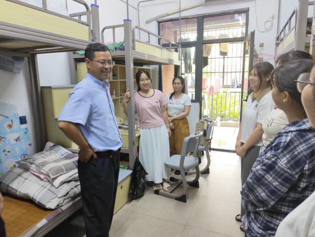 在新生宿舍,校领导亲切询问同学们在住宿、饮食、环境适应等方面的情况,对同学们提出的问题给予解答,鼓励大家要增强体魄,培养自我管理意识,积极主动适应新学校、新环境、新生活,做好新一阶段的人生规划,丰富充实即将开始的四年大学生活,开启新征程,扬帆再出发。
