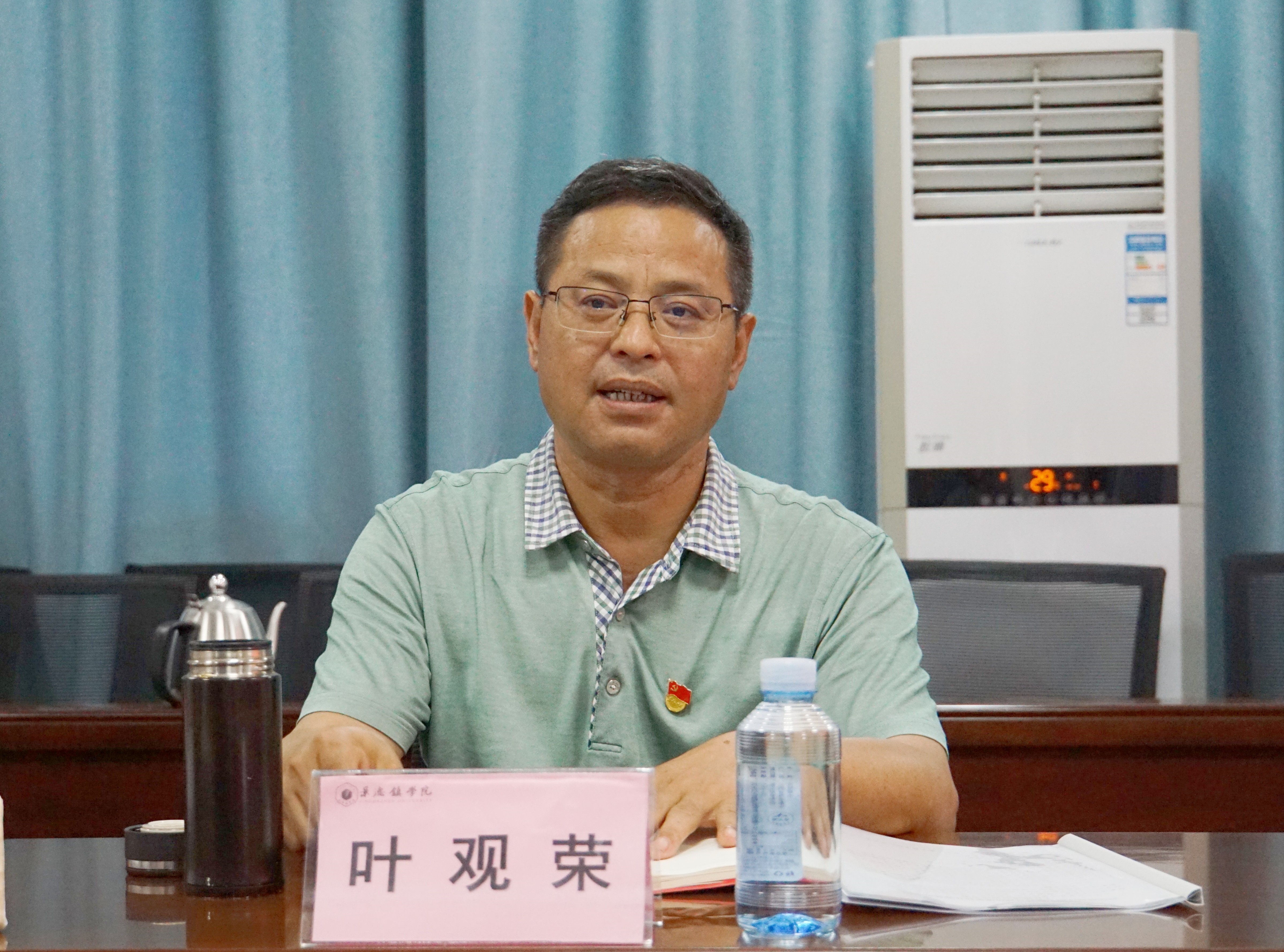 在认真听取交流汇报后,叶观荣对经济管理学院主题教育研究成果转化和整改整治工作给予了充分肯定,他指出,重视调查研究,是党的优良传统和重要优势,主题教育开展以来,经济管理学院党委围绕应用型转型发展、校企融合、专业设置等方面沉下心、沉下去开展调查研究,在调查研究中问政于师生、问需于师生、问计于师生,透过现象抓住本质、破解难题推动发展,调研开展的有条不紊、有声有色,扎实推进主题教育落地见效。他强调,要坚持抓好理论学习,深化思想理论武装,坚持不懈用习近平新时代中国特色社会主义思想凝心铸魂,不断提升理论素养和实践能力,做到学用贯通、学以致用、知行信合一;要坚持做好成果转化,持续推进整改整治,用好调查研究传家宝,使调查研究常态化,要认真思考、上下联动、共同发力,找准切入点、部署发力点,深化整改、动态销号,把“问题清单”变为“成果清单”,在点滴行动中落实整改整治效果,逐步将调研成果转变为推动学校高质量发展的有力举措;要坚持强化担当意识,善于作为乐于奉献,把主题教育激发出来的工作热情转化成攻坚克难、干事创业的实际成效,在党员干部和教职工中积极发扬吃苦耐劳、敢于担当、乐于奉献的精神,党员干部要坚持以身作则、当好表率,全校上下一条心,苦干实干、担当作为、不懈奋斗,在“弯道超车”中“增质提速”,走出一条有自己特色的高质量发展之路,扎实推进主题教育见行见效!