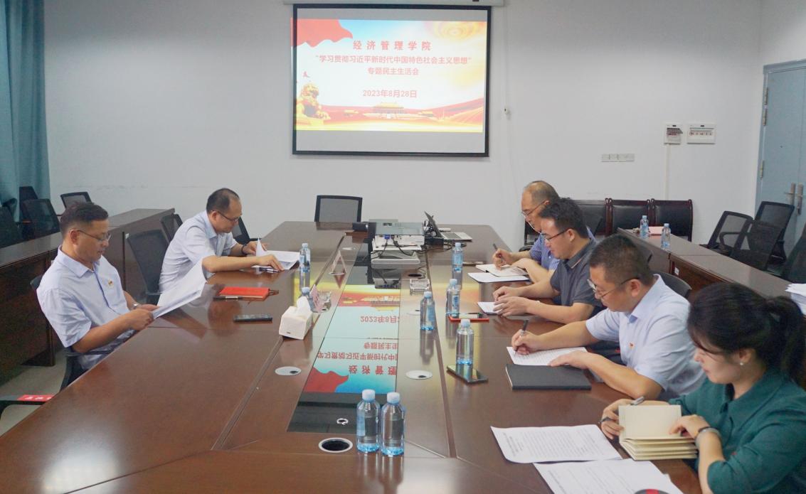 (本网讯:李婷婷)8月28日上午,经济管理学院在学院会议室召开二级学院党委领导班子学习贯彻习近平新时代中国特色社会主义思想主题教育专题民主生活会,校党委书记叶观荣到会指导并作点评讲话。经济管理学院党委书记王振华、副院长吕慧明、叶忠华,党委委员候灵云出席会议。