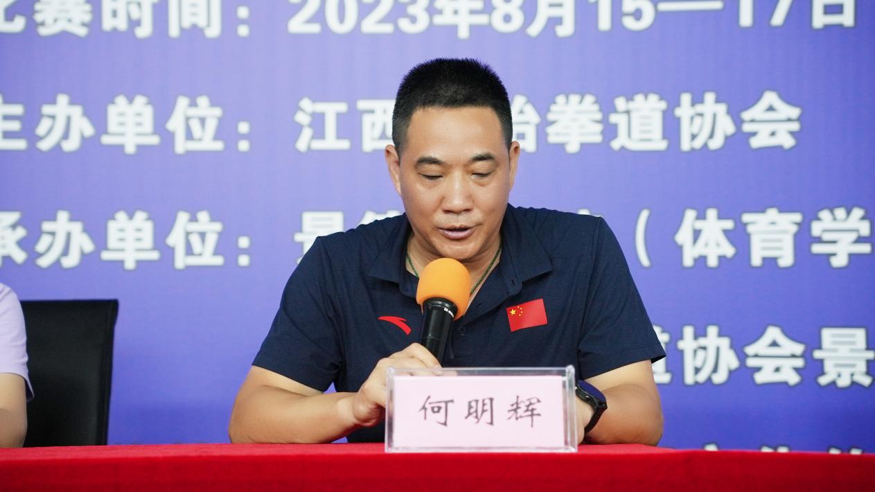 江西省跆拳道协会副秘书长何明辉致辞 校报记者董海强拍摄