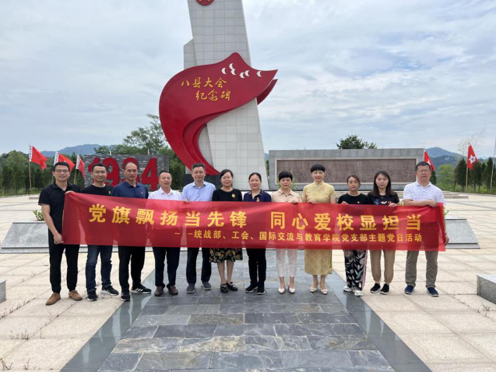 (本网讯:童心)6月16日上午,统战部党支部、工会党支部、国际交流与教育学院党支部全体党员干部前往浮梁县峙滩镇清溪村开展“党旗飘扬当先锋•同心爱校显担当”迎“七•一”主题党日活动。