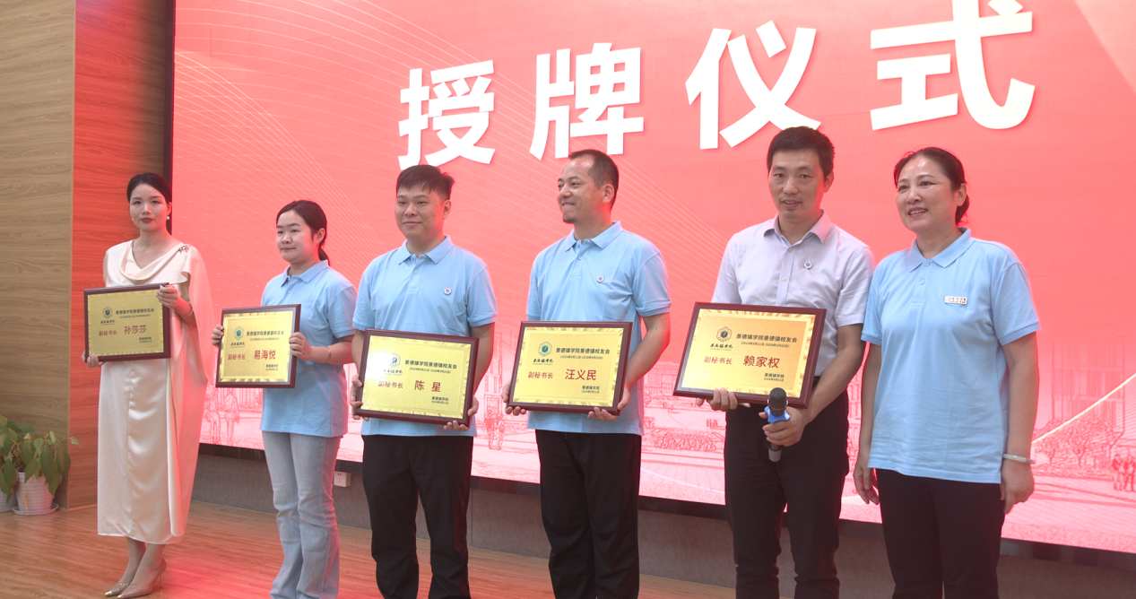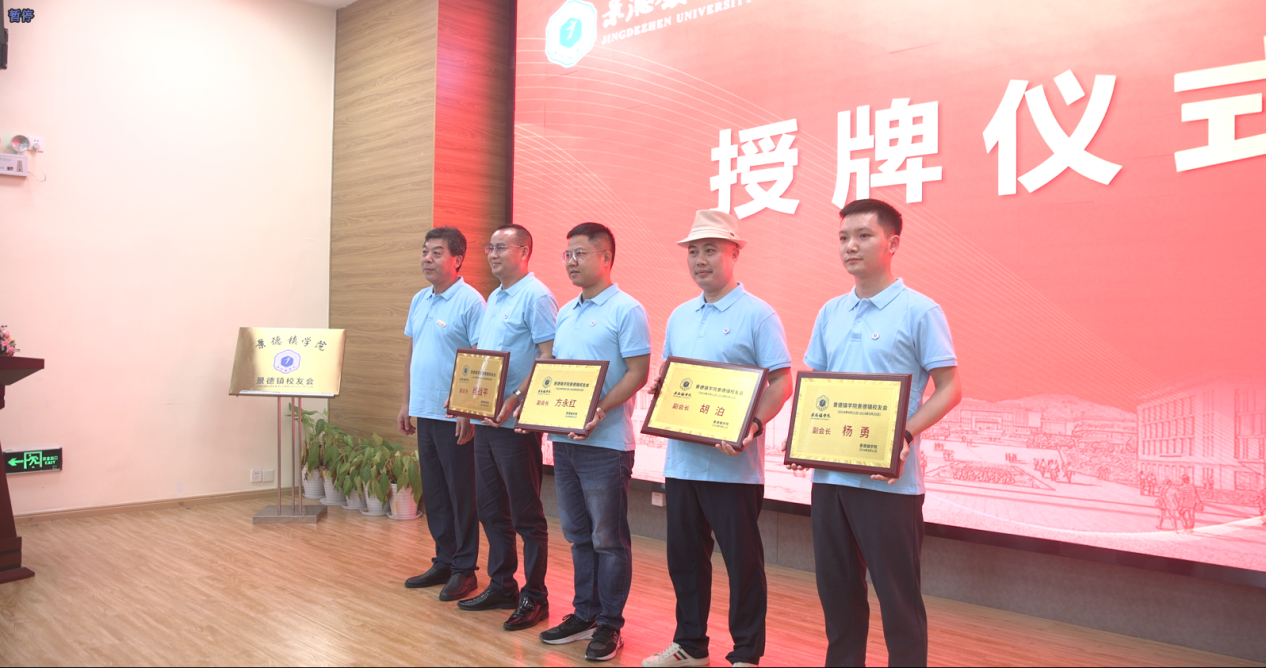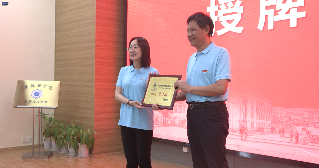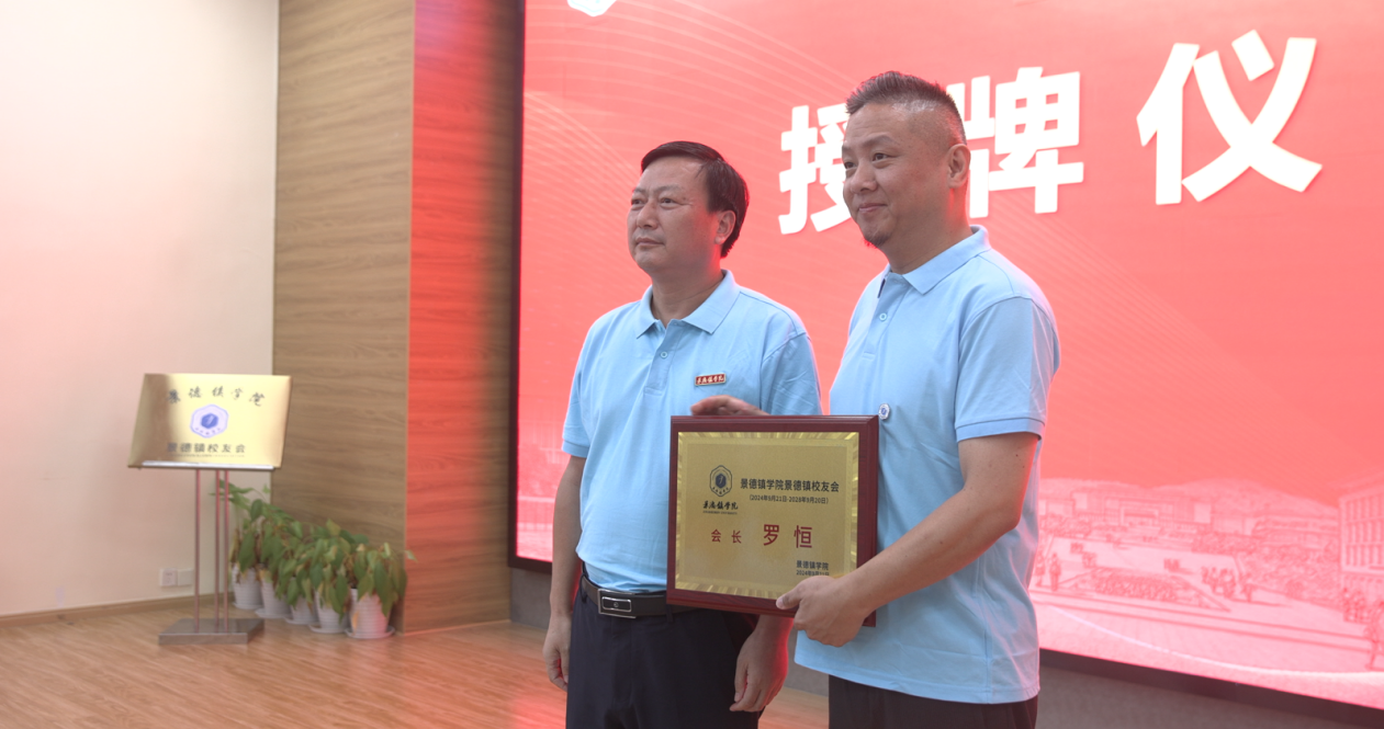 会上,叶观荣和新任会长罗恒为景德镇学院景德镇校友会揭牌,王丽心为新任会长罗恒授牌。