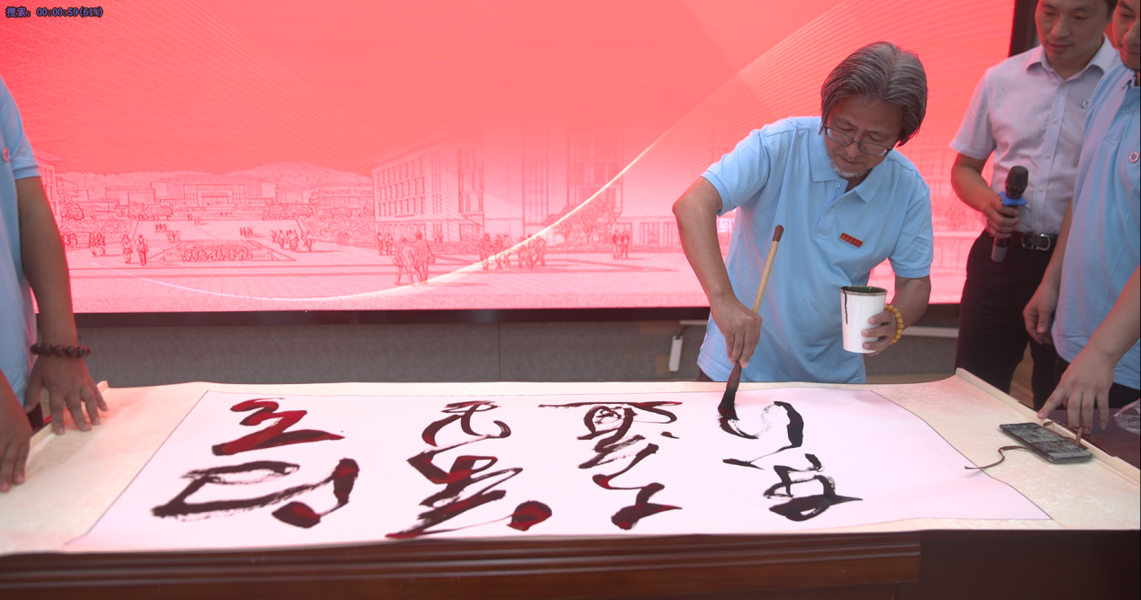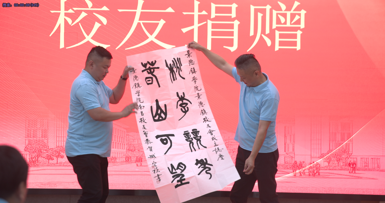 会上,景德镇学院美术馆馆长郑丰银现场书法创作,为景德镇校友会题字“江天万里,大道东行”。南昌校友分会和广东校友分会也为景德镇校友会送来贺礼。