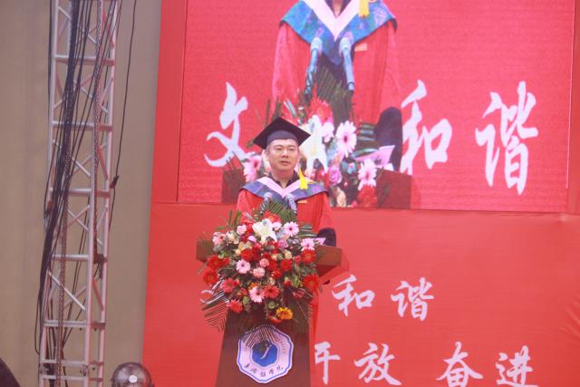 校党委副书记、校长陈运平为获得学士学位的毕业生代表授予学位证书、行拨穗礼