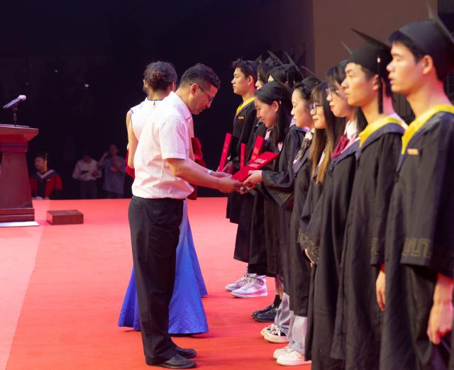 校党委书记叶观荣给优秀毕业生颁发荣誉证书