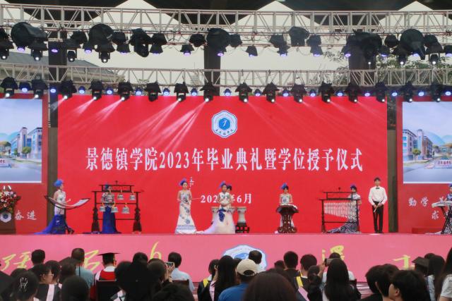 毕业典礼通过“景德镇学院”官方抖音号线上同步直播进行,学校各单位各部门主要负责人,教师代表、家长代表、学生代表参加典礼。