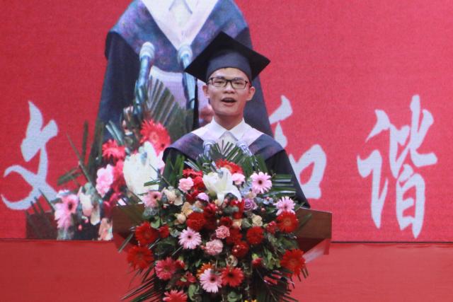 陈运平代表学校向2851名即将告别母校的毕业生表示最热烈的祝贺,向辛勤培育毕业生的师长、父母和亲友致以最诚挚的感谢。“历历开元事,分明在眼前”陈运平感叹道:“四年前你们如百川归海,汇聚到景院这个大家庭中,今天你们将展翅高飞,奔赴未来。回看过去,在“抗疫”的路上,你们用行动诠释了责任,用奉献彰显了担当,你们没有停止追求一流、追求卓越的步伐,你们用青春行动深刻践行着“自强不息,泽土惠民”的校训精神,把青春力量尽情播撒在国家富强、民族复兴的征程上!”