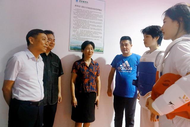 党政办公室、教务处、团委的领导、体育学院党政班子全体成员陪同。