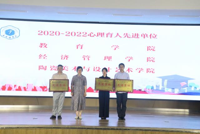 比赛结束以后,5•25心理健康教育月正式闭幕,闭幕式宣读了《关于表彰景德镇学院2020-2022年心理育人先进单位和先进个人的决定》,周清平为心理育人先进单位颁奖,陈后辉和赵新分别为心理健康教育先进工作者和2022-2023学年优秀心理委员颁奖。