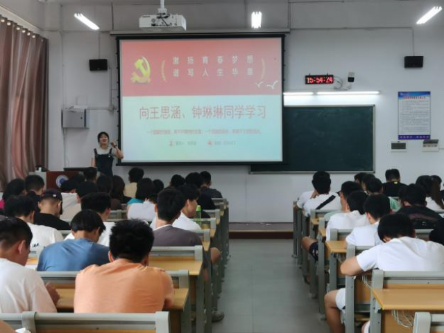 主题班会上,同学们分享到获奖同学王思涵、钟琳琳的心得和故事后,纷纷向她们祝贺。学院学生会主席陈雷说:“我们要学先进、赶先进、做先进,积极向身边的人学习,冠军就在我们身边。我们要学习她们勤学苦练,勇于进取,胜不骄败不馁的斗争精神。”学院团委副书记柯丽娟说:“我们要学习她们有理想、有目标,孜孜不倦、不懈追求的精神,认真学好自己的专业技能,提高自身知识才能,不辜负老师的教导、学校的栽培,以更优异的成绩为校争光!”同学们纷纷表示要积极响应孙洪山副省长的号召,向王思涵、钟琳琳同学学习,学习她们“发扬勇于拼搏、敢于胜利的精神,激扬青春梦想,谱写人生华章!”
