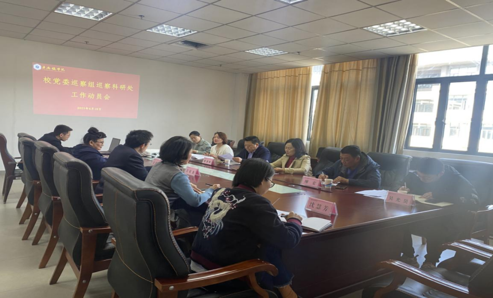 (本网讯:余迅)按照学校党委统一部署,近日,党委巡察组巡察科研处工作动员会在行政楼306会议室召开。校党委巡察组组长钱鸣华对巡察工作做动员讲话,科研处处长江旺龙主持会议。