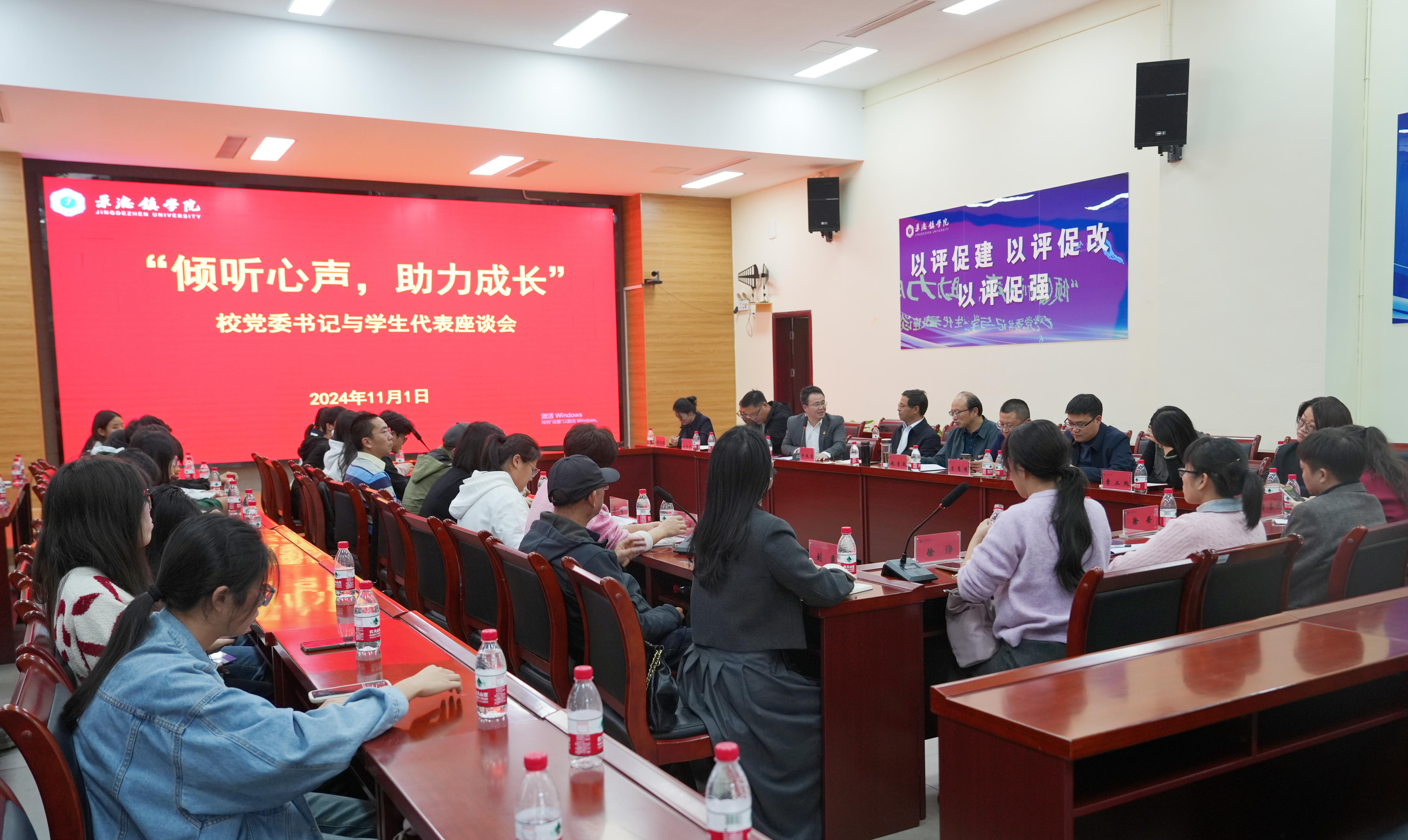 座谈会上,教师代表结合自身教学实践,分享了许多宝贵的教学经验和成功的教学案例,也反映了当前教学过程中遇到的一些困难和挑战。学生们积极发言,就学习资源、校园文化、心理辅导、就业创业等方面,表达了对学校发展的关切和期待,提出了在学习和生活中遇到的一些实际问题。叶观荣认真聆听每一位师生的发言,并现场作出回应,他还鼓励同学们要提升创新思维和创业精神,不断强化专业技能和综合素质,摆正就业心态,勇于面对困难和挑战。他表示,学校的发展离不开每一位师生的共同努力和贡献,希望师生们要继续保持积极向上的精神风貌,继续为学校的发展献计献策,共同推动学校的繁荣发展。