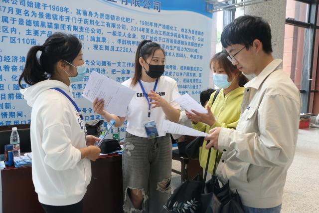 (本网讯:曾钰、邱雨欣、黄小悦)为切实做好毕业生就业工作,更好地拓宽毕业生就业渠道,缓解毕业生就业压力。5月20日上午,景德镇黑猫集团有限责任公司校园专场招聘会在学生活动中心一楼大厅举办。校党委委员、副校长吴丁,黑猫集团党委委员、组织部长徐建民亲临招聘现场指导工作,并与毕业生和企业招聘工作人员亲切交流。