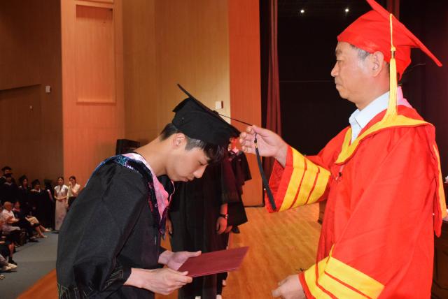 校党委副书记、校长陈运平为毕业生颁发学位证书、行拨穗礼