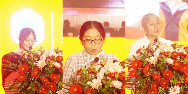 毕业生代表叶钰卿(左)、教师代表余轩宇(中)、校友代表姚石玉(右)