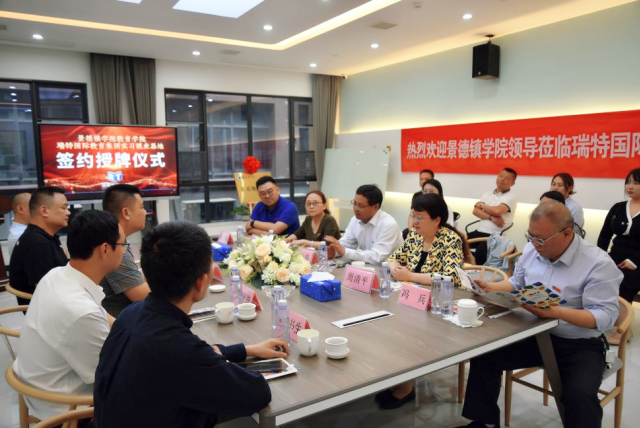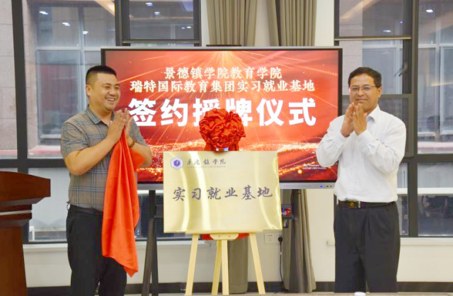 叶观荣与徐文剑进行“景德镇学院实习就业基地”挂牌揭幕仪式,冯兵与徐文剑签订双方合作协议。